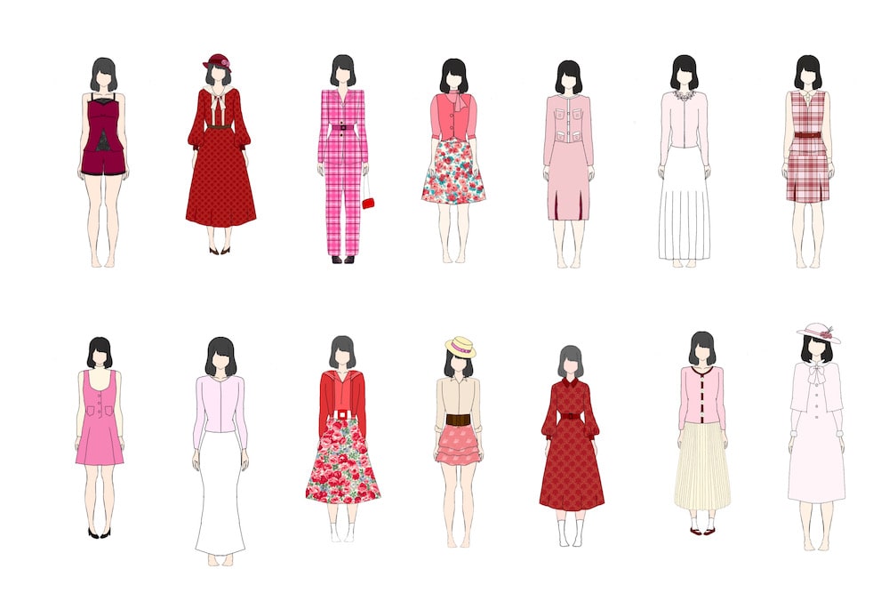 総合実習A2「空想科学」にて、衣裳のプリセットの様子。この中の四着が衣裳です!