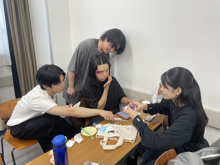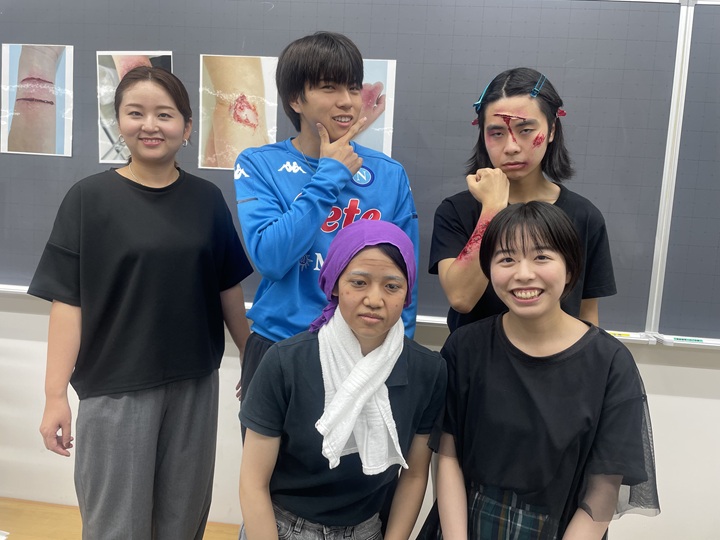ナチュラルメイク、老人メイク、傷メイクを教えていただきました。