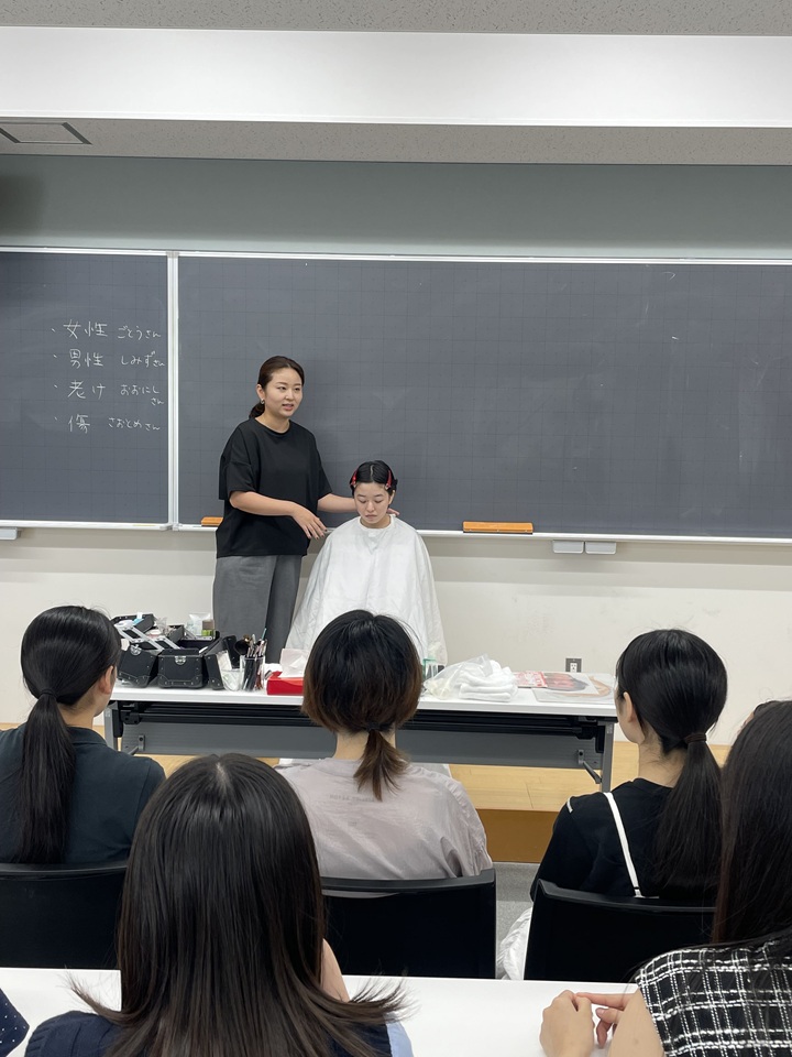 三善メークアップ研究所より講師をお迎えし、演技コース2年生を対象にメイク実習を行っていただきました。 映画演出Ⅳ、映画技術Ⅳ、映画演技実習Ⅱにおける合同撮影実習に向けて、毎年メイク実習を行なっています。