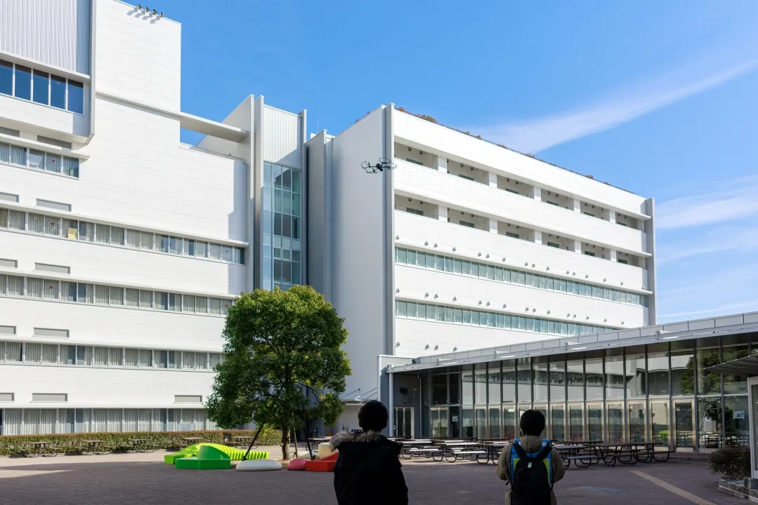 今回は,公式WEBサイトにおけるキャンパスの3Dテクスチャーモデルコンテンツの公開に併せて,初の「無人航空機(ドローン)」を用いた,キャンパス空撮の映像制作を実施しました。撮影を担当したのは,映画学科 撮影・録音コース4年の土屋和聖(つちや かずまさ)さんです。