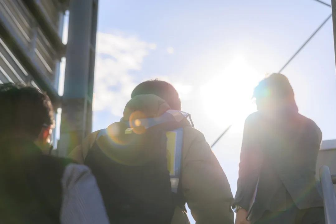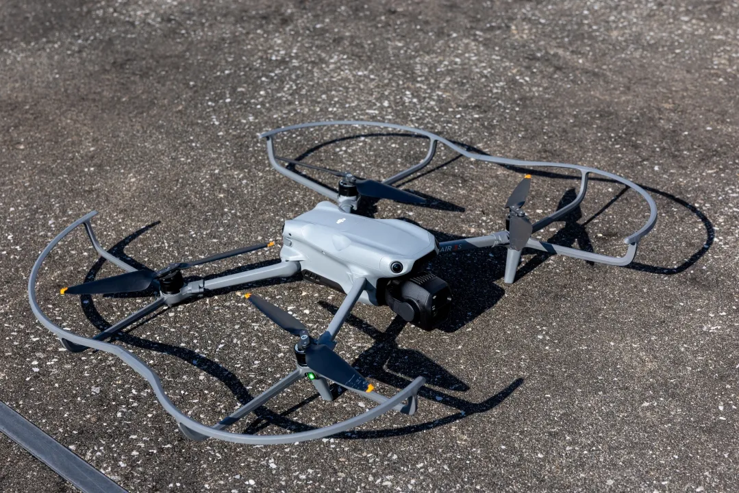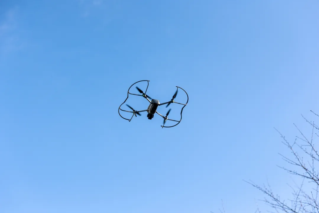 撮影の当日は快晴,風も弱風でまさにドローン日和でした。専用機材に長時間の撮影にも耐えうるバッテリーを用意,複数のスタッフで安全を確保し,法令順守で撮影に臨みました。