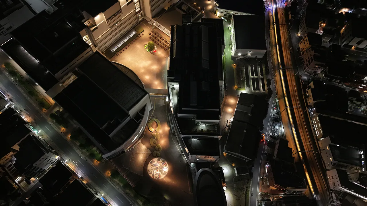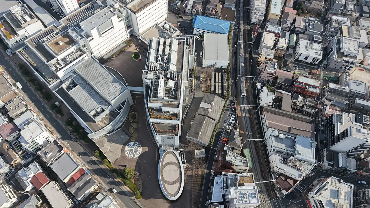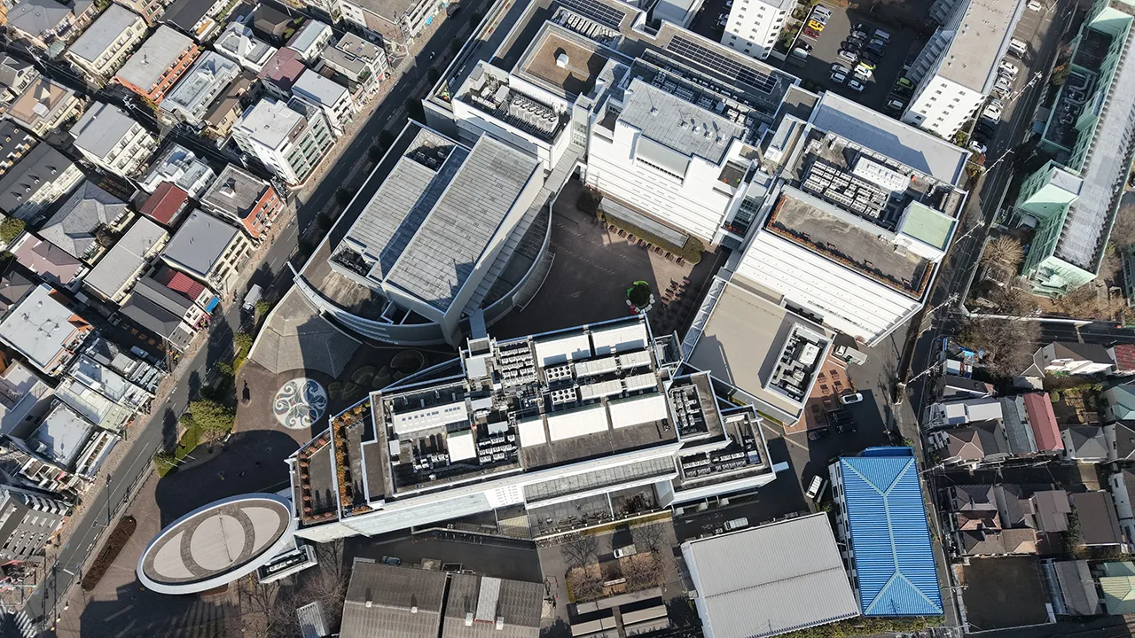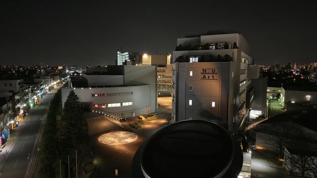 江古田キャンパス上空は、東京国際空港外側水平表面に指定されており、東京空港事務局に飛行の確認を行いました。高度150m未満の場合であれば調整は不要とのことでしたが、人口集中地区に設定されていることもあり、気軽に(無許可で)飛ばせる場所ではありません。国土交通省および東京航空局より許可・承認を受け、安全第一で撮影を行いました。普段、江古田キャンパスを上から見ることはできないので、上空からしかわからないギャラリー棟の目玉マークや、すぐ横を走る電車など、新しい視点で江古田キャンパスを見ることができました。都心にあるキャンパスという特性上、中庭のビル風を危惧していましたが、全く問題なく飛行させることができました。キャンパスですので、最初のうちはどうしてもビルを見上げる圧迫感があります。しかし、人の目線より高く見下ろす視点の映像で江古田キャンパスの敷地外周を飛行させたので、まだキャンパスに通っていないみなさんでも、広い視点でキャンパスをめぐることができるのではないかと思います。総じて、これまでにない新しい映像を撮れたと自負しています。