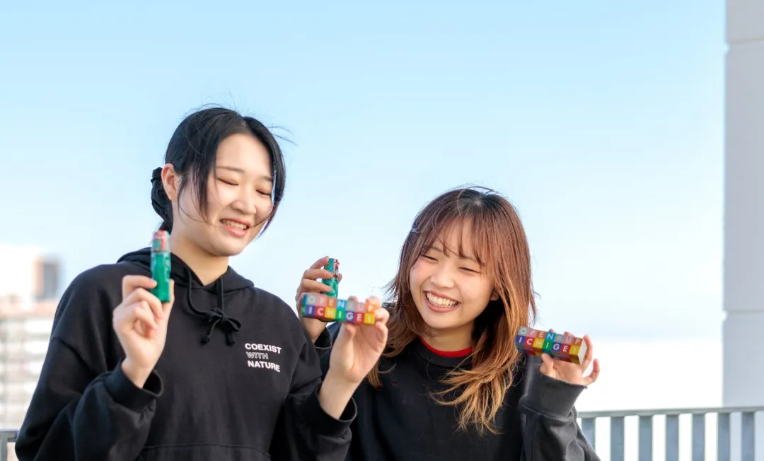 オープンキャンパスへご来場いただいた皆さまへ、感謝を込めてオリジナルラムネをご用意しました。パッケージは芸術学部限定の特別デザインになっており、手に取った瞬間に気分が上がるような仕上がりになっています。ちょっとしたお土産として、お持ち帰りいただけるとうれしいです。